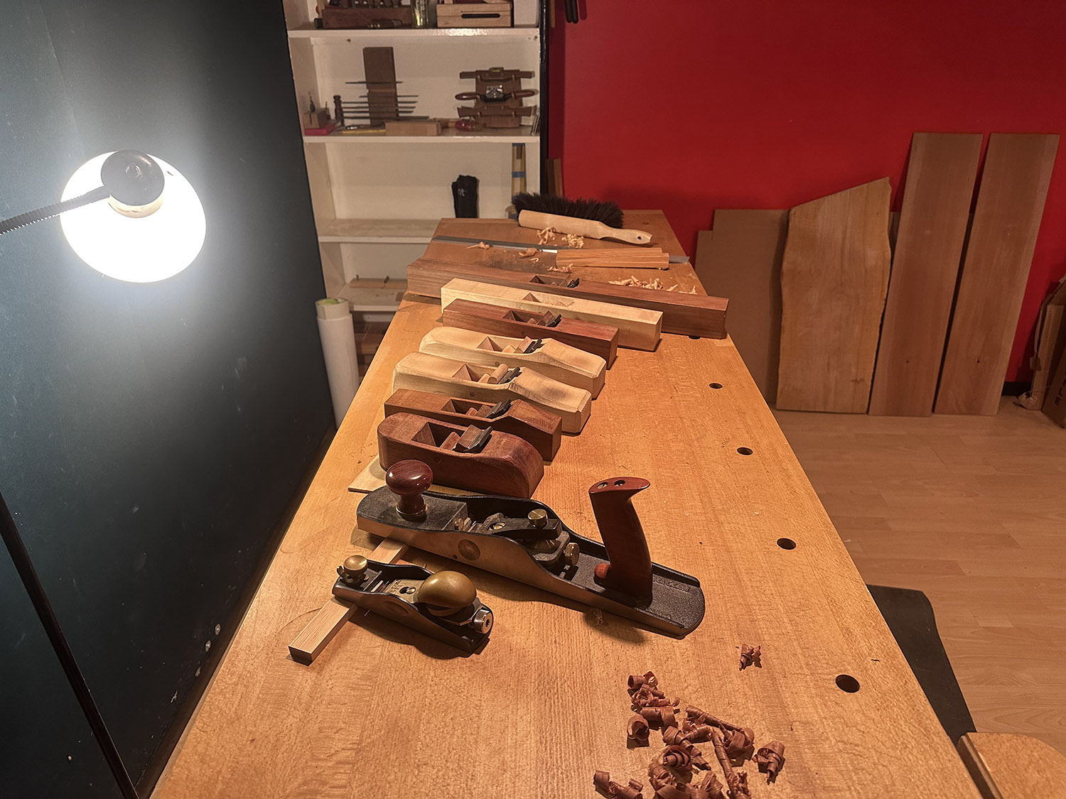 wooden planes - mostly made when at college of the redwoods; and lie nielsen block plane and veritas low angle jack plane.