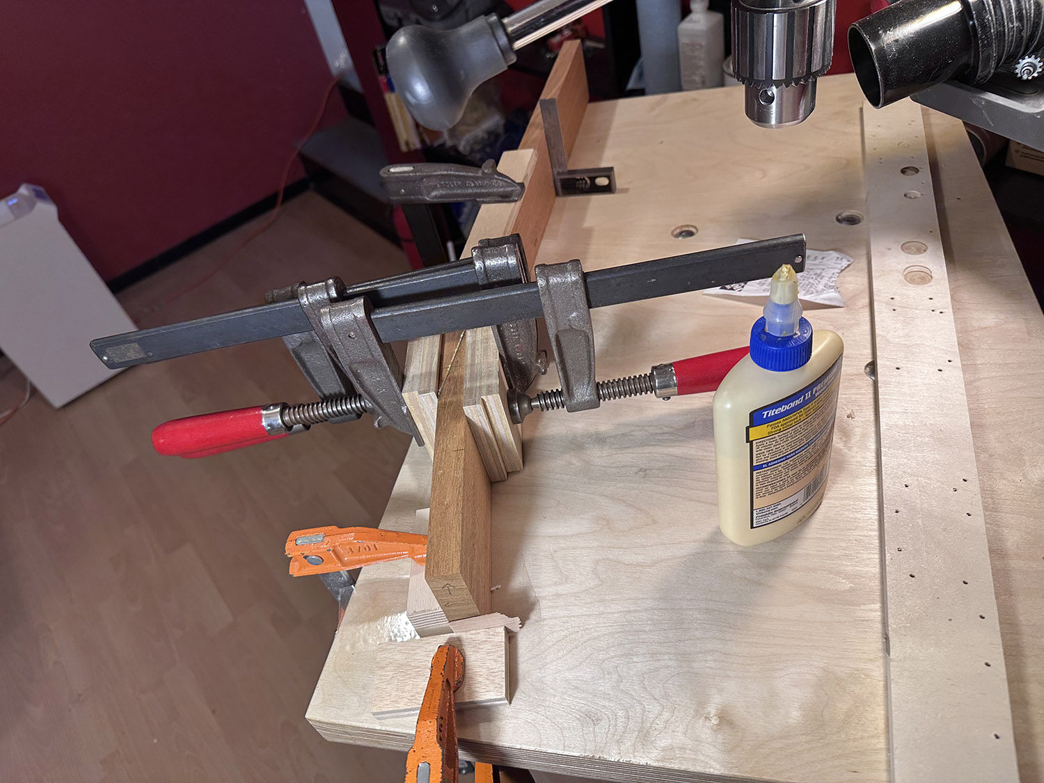 everything about this second neck go round is going better, including revised scarf joint clamping set up.