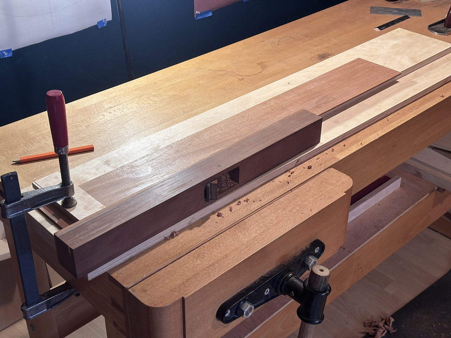 squaring up the top edge of the sides. the top will be used as a the reference surface while bending. the backside will be slightly tapered to approximate the complex curve of the domed and tapered back profile. careful attention to orientation is needed from now through the bending.
