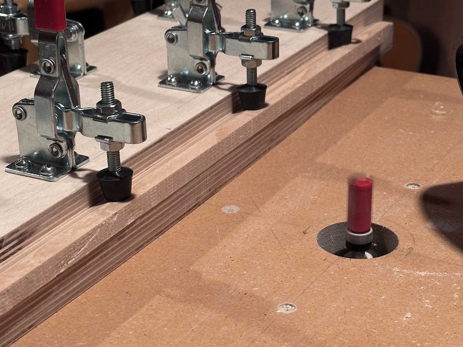 prior to cutting curve. from the center of the brace, one side is climb cut the other in normal direction. as the thickness increased towards the ends the cut is done in a few passes.