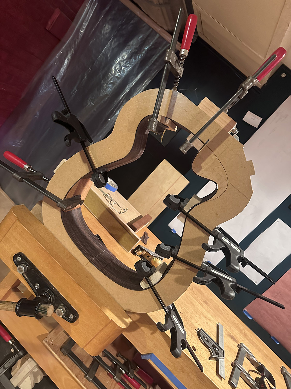 sides clamped in the building form. bass side tail marked to be cut to length.