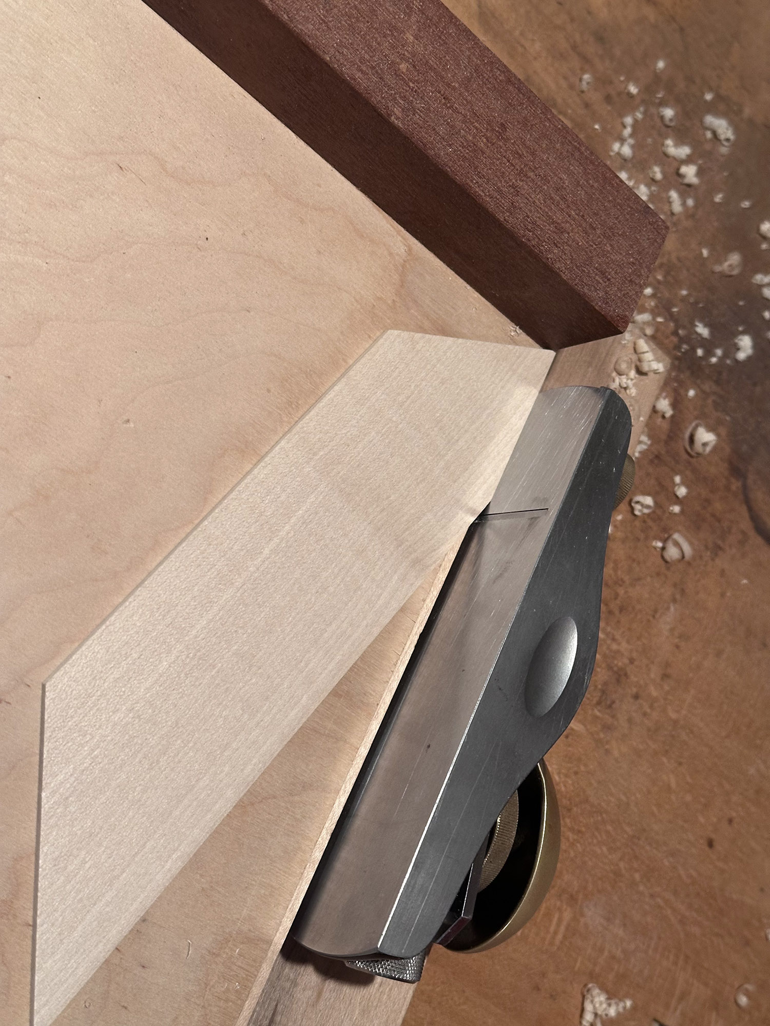 moving on to bracing the top. the full bracing layout is transfered to to the back of the top and here is shaping the bridge plate to match the layout of the x braces.