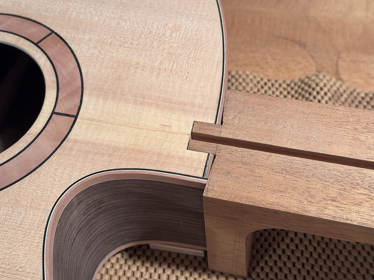 there is still a very small amount final fitting to be done here - note the 12th fret body join line is still about 1/2mm off the body.