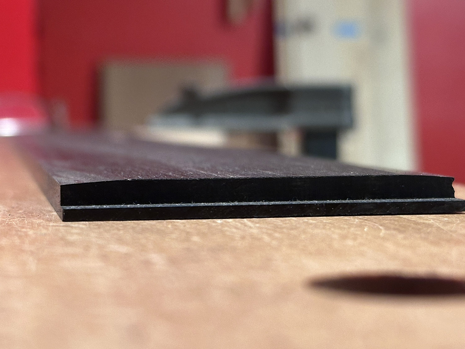 after cutting the fret slots, the fretboard is crowned. while it is common to use a compound radius on fretboards, this one will be a consistent 16' radius. here i have planed facets into the edged of the top of the fretboard to begin forming the crown.